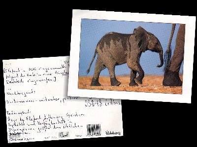 ![]() ... [Elefant in MUC eingesammelt, folgend die karte in einer Münchner Raststätte eingeworfen.] ... Nachtragend: Postscriptum: Dennis |